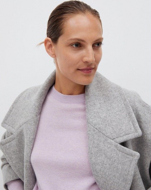 The insulated jacket is made of leather. A light layer of insulation. Details: stand-up collar, zipper, two pockets on the sides.