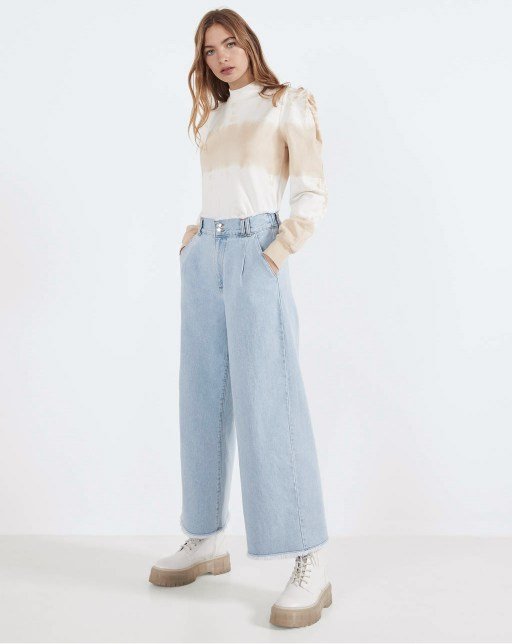 Culotte jeans with frayed hems